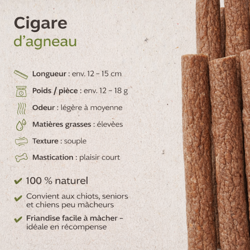- Cigares d'agneau ou poulet - en mastication courte ou friandise