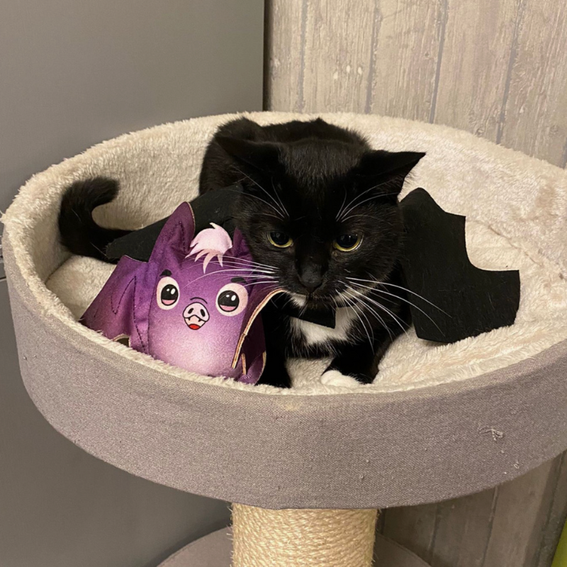 Transformez la saison d’Halloween en une fête pleine de câlins et de jeux pour votre chat ! Cette chauve-souris n’a rien d’effrayant : avec ses grands yeux ronds et son petit museau, elle se transforme vite en compagnon de jeu irrésistible.