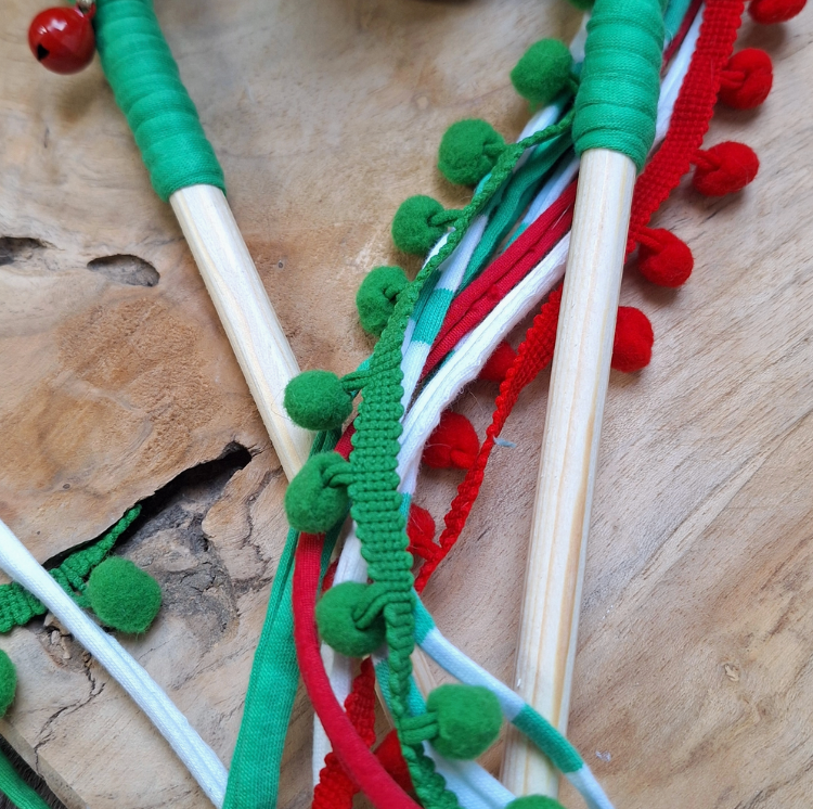♻️ Matériaux : Bois, coton recyclé, corde et grelot