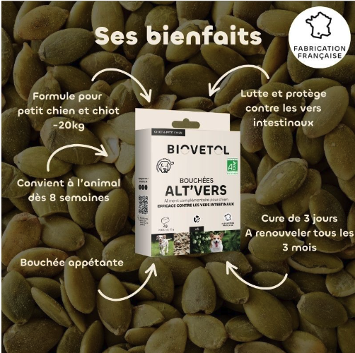 Bouchées Alt’Vers Bio pour chiot et chiens (<20kg) - Vermifuges naturels