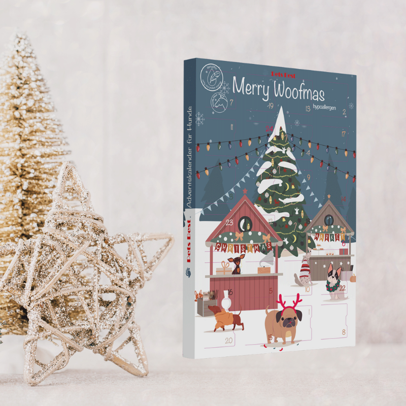 Découvrez le Calendrier de l’Avent “Christmas Market” spécialement conçu pour les chiens sujets aux allergies ou aux estomacs fragiles.